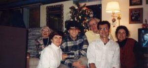 Here is a Christmas photo of myself, my Mom, and a few friends at Megee’s house. It’s Christmas, around the winter solstice; notice it’s pitch black outside the window. From left to right are Megee; my Mom; myself (about 100 pounds ago); George Cowan, who was living in Seattle last I heard; Gregory Emmanuel, a Greek citizen who is now living in Arizona; and Lacen Horter, an Oregonian who has lately gone back home to Oregon. I keep in touch mostly with Lacen; Gregory’s gotten hard to keep track of, and George and I never really got to know each other.